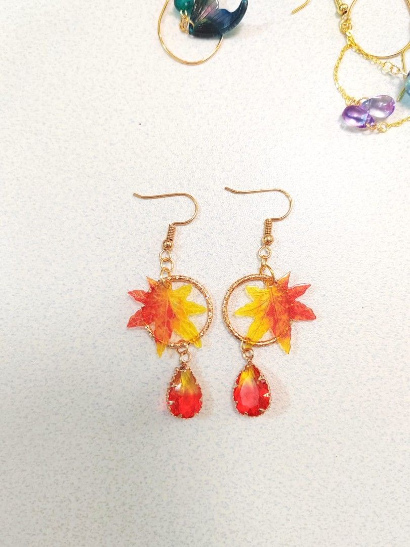 楓葉紅寶石耳環