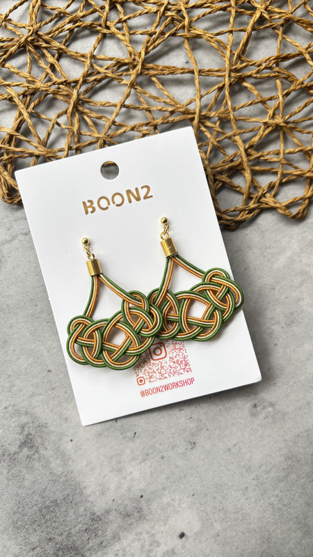 全人手製作的水引線耳環,配以保色金製成的配件,顏色柔和,適合不同場合。耳環寬3.8cm, 長5.2cm