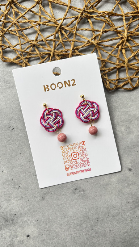 全人手製作的水引線耳環,配以保色金製成的配件,顏色柔和,適合不同場合。耳環寬1.8cm,長3.5cm