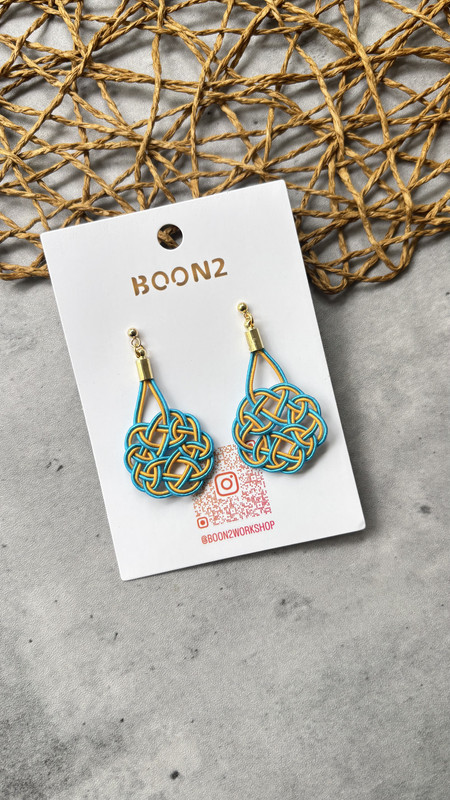全人手製作的水引線耳環,配以保色金製成的配件,顏色柔和,適合不同場合。耳環寬2.7cm,長5cm
