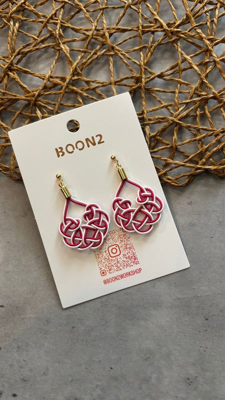 全人手製作的水引線耳環,配以保色金製成的配件,顏色柔和,適合不同場合。耳環寬2.8cm,長4.8cm