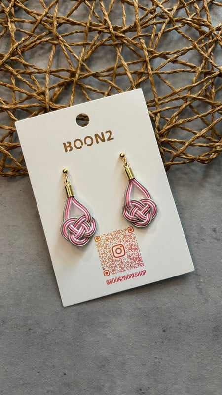 全人手製作的水引線耳環,配以保色金製成的配件,顏色柔和,適合不同場合。耳環寬1.8cm,長4.2cm
