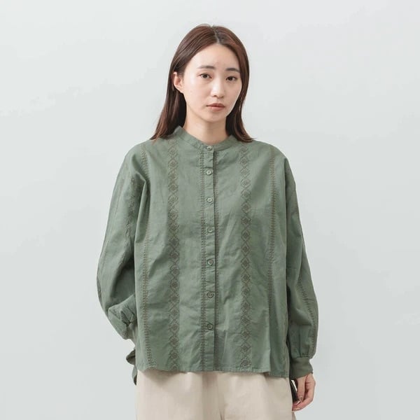 M.M.O. 刺繡羅紋袖口襯衫 (綠)