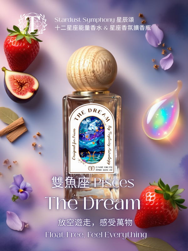 雙魚浪漫多情,擁抱夢境與感受,也容易沉溺情緒之中。 The Dream 以柔甜果香與奶香構築夢幻氛圍,番茄葉的青澀氣息如清醒劑,守護心神不迷失。 蛋白石激發創造力與靈性,喚醒內在光芒與獨特之美。 能量水晶|蛋白石:蛋白石|喚醒創意與智慧,展現個人光彩與靈性特質 前調 | 草莓 中調 | 紫羅蘭 ; 無花果 ; 番茄葉 後調 | 檀香木